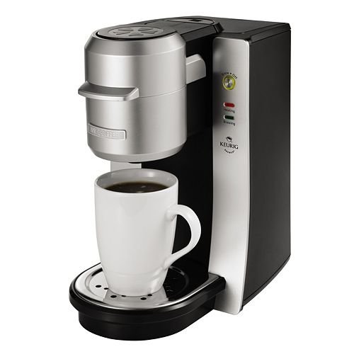 Thi is the Single Serve Coffee Maker with 9 ounce brewing capacity and featuring Keurig Brewed technology, you can make gourmet coffee, tea or hot cocoa at the touch of a button. The drip tray is removable to accomodate larger cups or travel mugs up to 5-3/4" in height so you can have your coffee at home or on the go. The Mr. Coffee single serve also comes with a variety of five K-Cups, making it ready for use immediately after opening. Discover a variety of flavors to help you decide which is your favorite. This brewer also works with the Keurig My K-Cup Reusable Coffee Filter (not included) for brewing you own gourmet coffee,